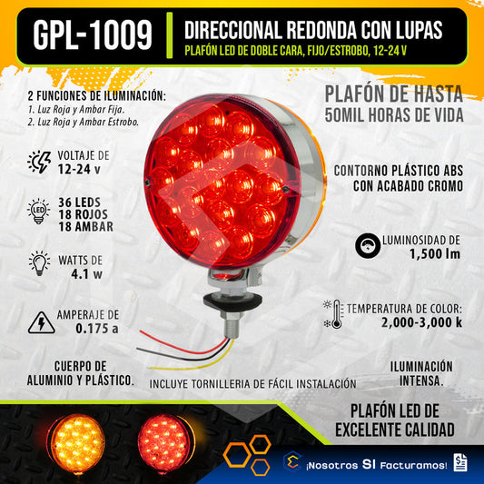 1 Plafón Direccional Redonda 36 Leds Estrobo Bicolor 12-24v Bicolor