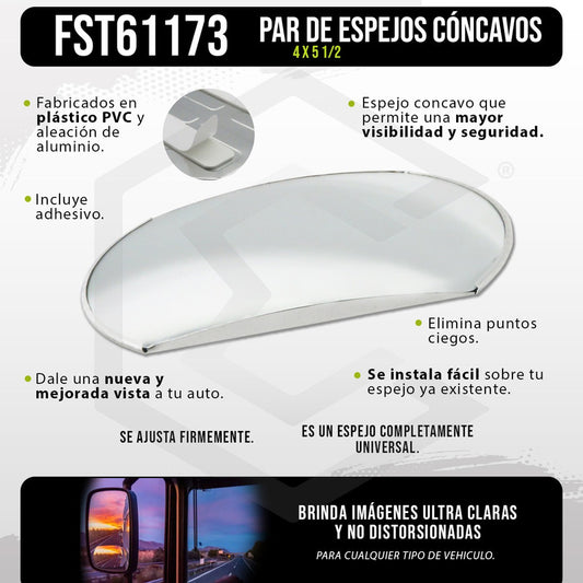 1 Espejo Recortado Concavo Universal Adherible 4x5 Pulgadas