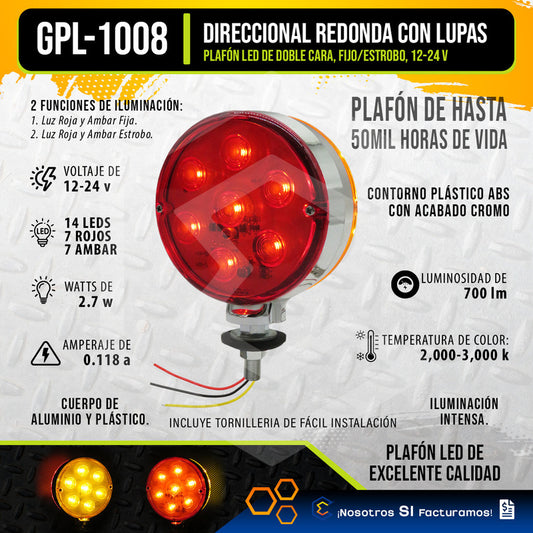 1 Plafón Direccional Redonda 14 Leds Estrobo Bicolor 12-24v