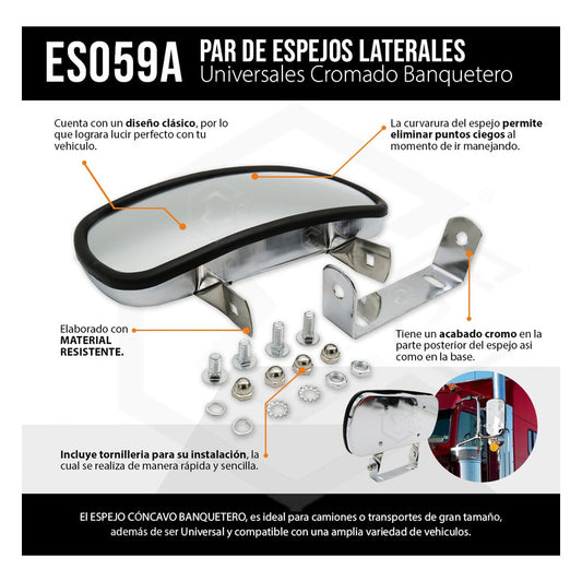 1 Espejo Lateral Universal Trailer Camion Cromado Banquetero