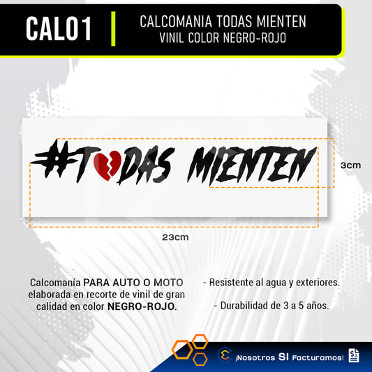 10 Calcomanía Todas Mienten Sticker Vinil Auto Moto 32x4.5cm