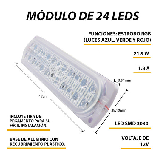10 Modulo 24 Led Ovalado Multiuso Doble Jumbo Rgb 2 Funcion Rgb