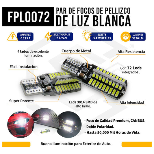 2 Focos Led T15 W16w 912 921 Pellizco Reversa Canbus 12/24v