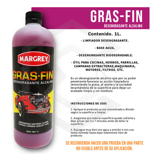 2 Gras Fin 1lt Limpiador Auto Motor Casa Cocina Margrey