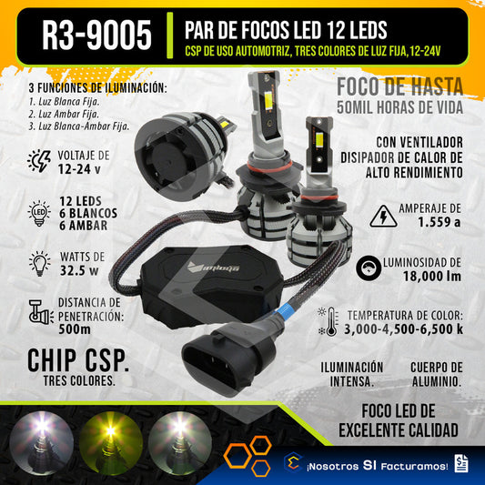 2 Focos Led 9005 Ventilador Alta Baja Tricolor 18000lm 12-24 9005
