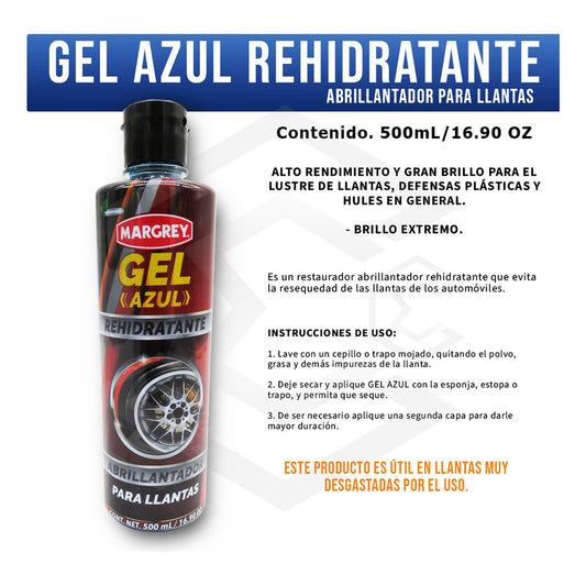 2 Gel Azul Abrillantador Rehidratante Llantas Margrey 500 Ml Azul