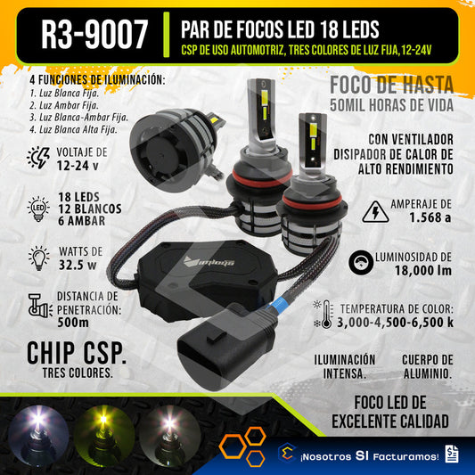 2 Focos Led 9007 Ventilador Alta Baja Tricolor 18000lm 12-24 9007