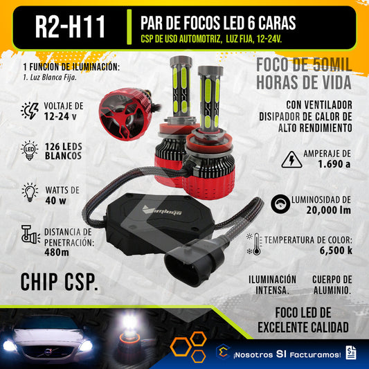 2 Focos Led H11 Ventilador Alta Baja Aro Luz 15,000lm 12-24v H11