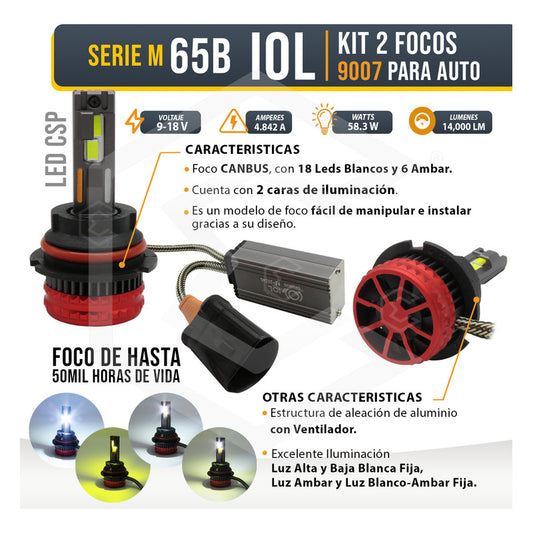 2 Focos 9007 12led Csp Bicolor Ventilador Alta Y Baja 14000l 9007
