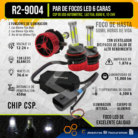 2 Focos Led 9004 Ventilador Alta Y Baja Aro 15,000lm 12-24v 9004