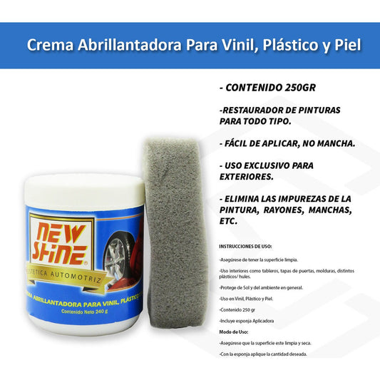 2 New Shine Crema Abrillantadora Vinil Plastico Piel Esponja Crema