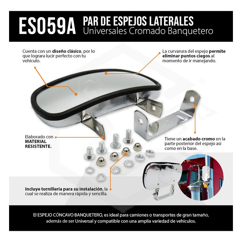 1 Espejo Lateral Universal Trailer Camion Cromado Banquetero
