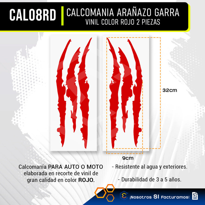 ¡Nosotros Si Facturamos, Esperamos Tu compra! ¡ETAPI TRAE PARA TI! ¿Qué incluye? -Diez juegos de 3 calcomanía Sticker ‘GARRAS’ SKU: CAL08BK NEGRO CAL08RD ROJO CAL08BL AZUL ¿Buscas darle un toque único a tu auto o moto? Nuestras calcomanías de vinil son la forma perfecta de expresar tu personalidad con estilo y calidad. CARACTERÍSTICAS: Uso versátil: ideales para autos, motos, cascos, laptops, cuadernos, vitrinas y más. Vinil Premium de Larga Duración. Fabricadas con vinil profesional de alta calidad, resistente al agua, al sol, al polvo y al lavado a presión. Son ideales para exteriores y aguantan sin problema hasta 5 años sin decolorarse ni despegarse. Aplicación fácil. Todas nuestras calcomanías incluyen papel transfer ya colocado. Solo sigue estas instrucciones de uso: 1.Limpia y seca la superficie 2.Coloca la calcomanía, presiona, despega el transfer… ¡y listo! No necesitas herramientas especiales. Removibles. No Daña la Pintura ni Deja Residuos. Nuestras calcomanías se pueden remover sin afectar la superficie original. Ideal para quienes cambian de estilo con frecuencia o venden su vehículo. Lleva tu auto o moto al siguiente nivel con nuestras calcomanías de vinil de alta resistencia, diseñadas para quienes aman destacar en cada camino. MEDIDAS DE UN JUEGO (VER EN IMAGENES): 9cm largo x 32cm alto ¿Por qué ETAPI es tu mejor opción? En ETAPI tenemos más de 12 años de experiencia en Ventas de accesorios automotrices y pioneros con más de 9 años con ventas en Mercado Libre. Somos Mercado Líder Platinum, por la excelente calidad en productos, servicio y rapidez, prometiendo clientes satisfechos Te brindamos la mejor experiencia de compras por internet y te ofrecemos Asesoría de nuestros expertos desde el primer momento de tu compra, dando seguimiento hasta que el producto llegue a la puerta de tu casa. Tu compra esta 100% segura con nosotros. ¿Cuándo se realiza tu envió? Tu envió va con Mercado Envíos. El envío se realiza el mismo día de la compra o al siguiente día hábil, según la hora en que se realiza la compra. ¡Esperamos tu compra!
