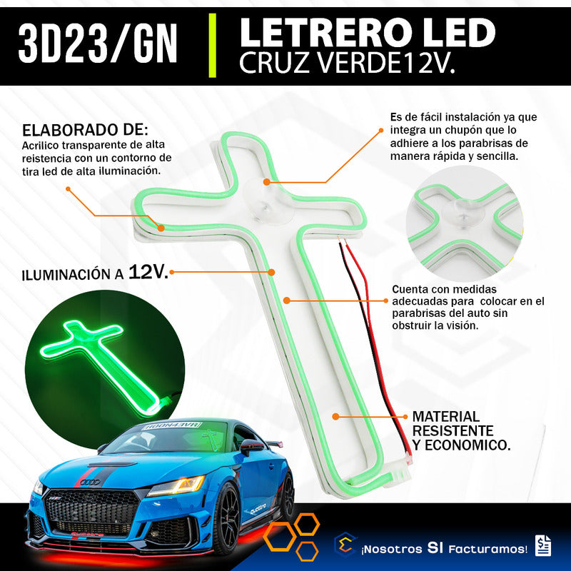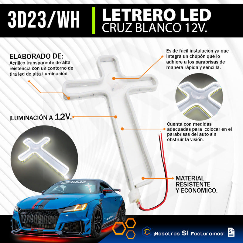 ¡Nosotros Si Facturamos, Esperamos Tu compra! !!ETAPI TRAE PARA TI! ¿Qué Incluye? -10 Cruz LED de 26 cm con chupón y cable de conexión 12V Figura Cruz LED Luz Neón para Parabrisas con Chupón – 26 cm – 12V Dale un toque único y llamativo a tu vehículo con esta espectacular figura de cruz con luz LED tipo neón. Ideal para colocar en el parabrisas gracias a su práctico sistema de sujeción con chupón. Agrega estilo, personalidad y visibilidad a tu vehículo con esta luz neón en forma de cruz. Características: Fácil de instalar y muy llamativa Diseño: Cruz con luz LED tipo neón Alimentación: 12V Fijación: Chupón para fácil instalación en vidrios Material resistente y duradero Bajo consumo de energía Uso versátil. Perfecta para autos, camiones, taxis o cualquier vehículo con toma de 12V. También puede utilizarse en vidrios de locales comerciales o cuartos con entrada de corriente adecuada. ¿Por qué ETAPI es tu mejor opción? En ETAPI tenemos más de 12 años de experiencia en Ventas de accesorios automotrices y pioneros con más de 9 años con ventas en Mercado Libre. Somos Mercado Líder Platinum, por la excelente calidad en productos, servicio y rapidez, prometiendo clientes satisfechos Te brindamos la mejor experiencia de compras por internet y te ofrecemos Asesoría de nuestros expertos desde el primer momento de tu compra, dando seguimiento hasta que el producto llegue a la puerta de tu casa. Tu compra esta 100% segura con nosotros. ¿Cuándo se realiza tu envió? Tu envió va con Mercado Envíos. El envío se realiza el mismo día de la compra o al siguiente día hábil, según la hora en que se realiza la compra. ¡Esperamos tu compra!