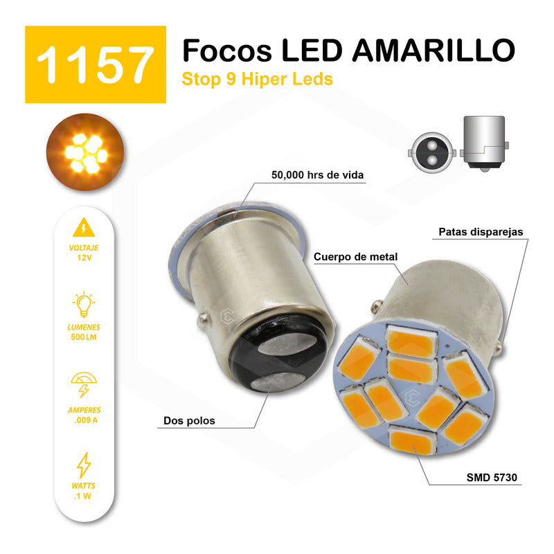 Nosotros Si Facturamos, Esperamos Tu compra ETAPI TRAE PARA TI Sku: (EL PRECIO PUBLICADO ES POR 10 UNIDADES) 1157001WH 1157001YL 1157001RD 1157001BL 1156001WH 1156001YL 1156001RD 1156001BL Todos nuestros datos son 100% verídicos, Voltajes, Watts, Amperes. Puedes comprobarlo en la imagen de la publicación. NO TE DEJES ENGAÑAR POR PUBLICACIONES CON INFORMACIÓN FALSA. Foco de calavera con entrada 1156, 1157; Se utiliza para luz de giro, luz trasera, luz de marcha atrás, luz de marcha atrás, luz de marcador lateral, luz de freno, luz de circulación diurna y luz de estacionamiento en coche, camión, SUV, motocicleta, scooter, remolque, RV, barco, marino, etc. Estos iluminan mucho más fuerte porque tienen diodos de LED en lugar de los filamentos halógenos. La luz que proporciona es potente y llamativa, más que suficiente para desempeñar su función. Colocarlos es de lo más sencillo, solo entran y salen con un poquito de presión. Foco totalmente universal, ideal para vehículos todo terreno, 4×4 ATV, UTV. ZRZ, Cuatrimotos, Jeep, Motocicletas; camiones de carga, remolques, tractores, etc. Descripción: Foco con diseño compacto Brindan una excelente iluminación. Entrada Tipo 1157 1156 De fácil instalación 100% NUEVO COLORES: 1157001WH (Blanco) 1157001YL (Ámbar) 1157001RD (Rojo) 1157001BL (Azul) 1156001WH (Blanco) 1156001YL (Ámbar) 1156001RD (Rojo) 1156001BL (Azul) CARACTERÍSTICAS 1157001: -Watts: .1w -Voltaje: 12v -Amperes: .004LM -lúmenes: 254LM -Leds: 9 -Medidas (VER EN IMÁGENES): 18mm ancho x 22 largo CARACTERÍSTICAS 1156001: -Watts: .1w -Voltaje: 12v -Amperes: .004LM -lúmenes: 254LM -Leds: 9 -Medidas (VER EN IMÁGENES): 18mm ancho x 22 largo (Ver en el video De Su Funcionamiento, solo desde una computadora). ¿Por qué ETAPI es tu mejor opción? En ETAPI tenemos más de 12 años de experiencia en Ventas de accesorios automotrices y pioneros con más de 9 años con ventas en Mercado Libre. Somos Mercado Líder Platinum, por la excelente calidad en productos, servicio y rapidez, prometiendo clientes satisfechos Te brindamos la mejor experiencia de compras por internet y te ofrecemos Asesoría de nuestros expertos desde el primer momento de tu compra, dando seguimiento hasta que el producto llegue a la puerta de tu casa. Tu compra esta 100% segura con nosotros. ¿Cuándo se realiza tu envió? Tu envió va con Mercado Envíos. El envío se realiza el mismo día de la compra o al siguiente día hábil, según la hora en que se realiza la compra. ¡Esperamos tu compra!