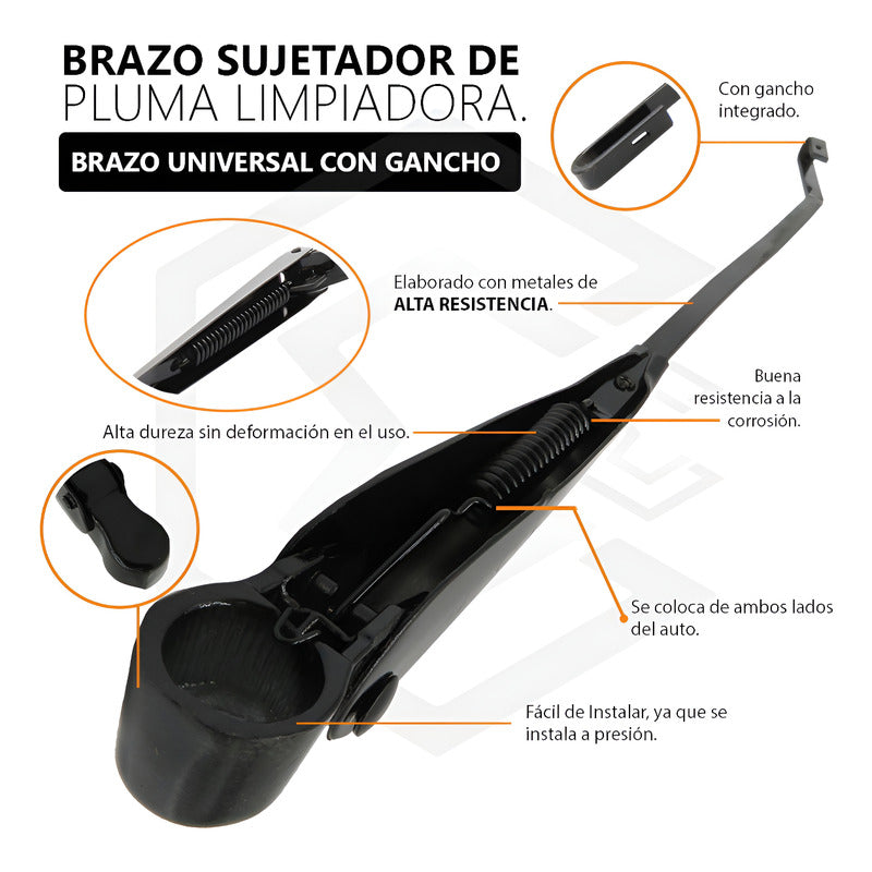 1 Pza Brazo Limpia Parabrisas Universal Con Gancho Metalico